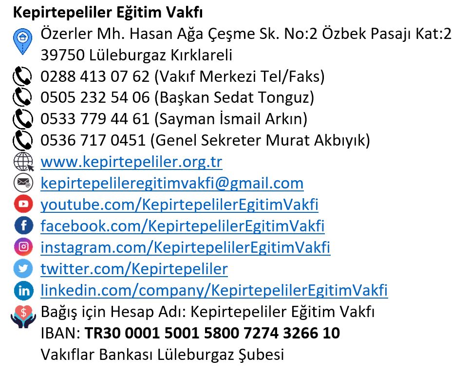 Youtube kanalımız: youtube.com/KepirtepelilerEgitimVakfi