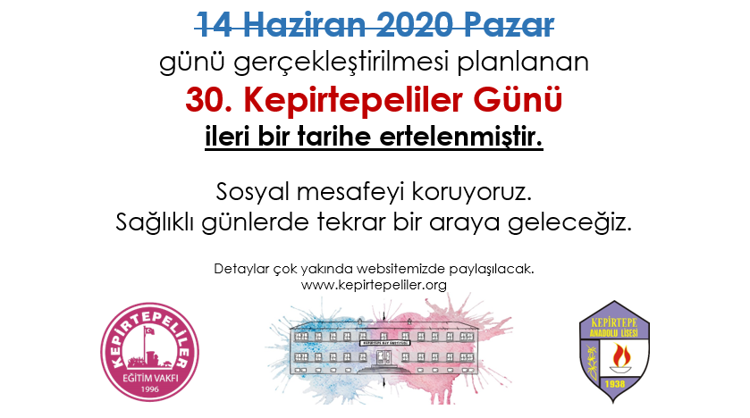 14 Haziran 2020 Pazar günü gerçekleştirilmesi planlanan 30. Kepirtepeliler Günü ileri bir tarihe ertelenmiştir.
